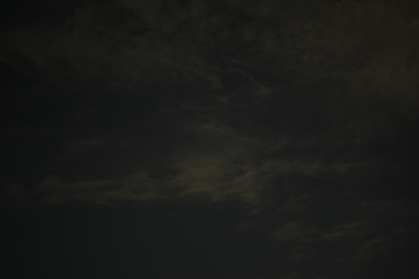 周囲が少し明るいのと雨の後で、雲が厚くて、雲以外何も見えない。