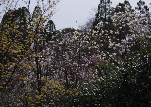 椿園の中に植えられたモクレンが見頃でした。シモクレン、ハクモクレンどれも今が盛りで圧倒されます。シモクレンと一緒に写ってる赤いのは遅咲きの椿です。